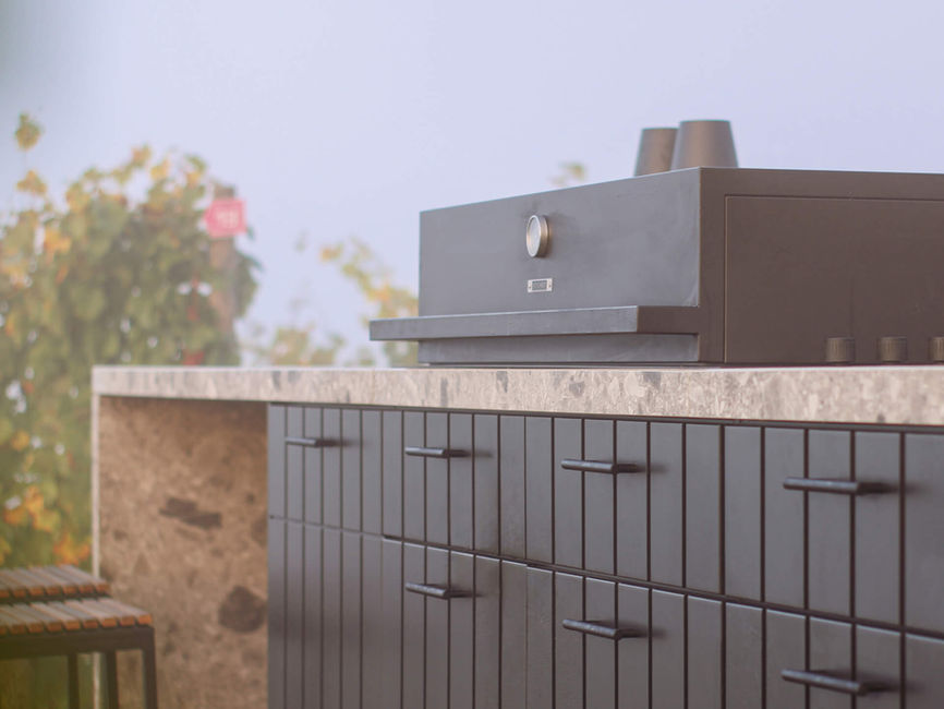 Les plans de travail sont fabriqués à partir de céramique, matériau idéal grâce à sa résistance aux températures extrêmes, aux rayons UV et à l'humidité, ce qui garantit sa durabilité face aux intempéries. De plus, la céramique est non poreuse, facile à nettoyer et résistante aux rayures.